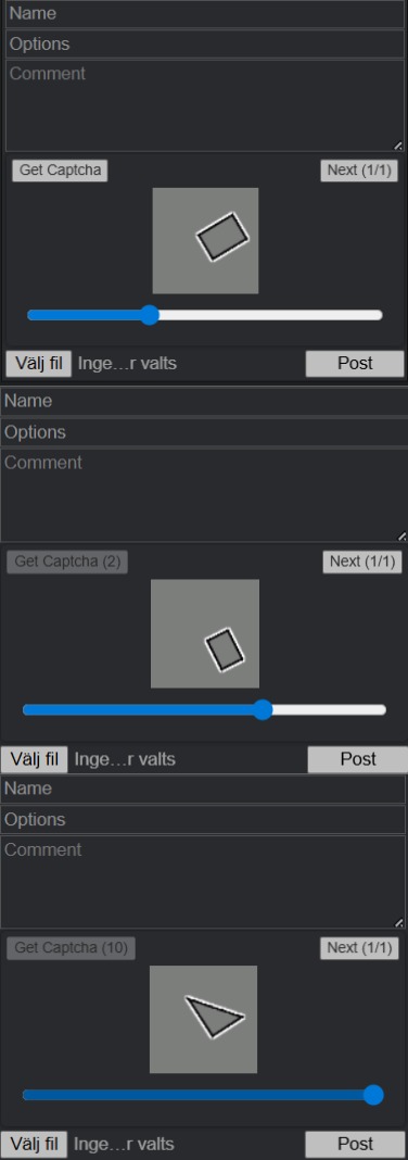 >>152589773Are you retarded? >Get Captcha>move the white dot three times to the right>leave it on the one that isn't like the other two>Next>Post