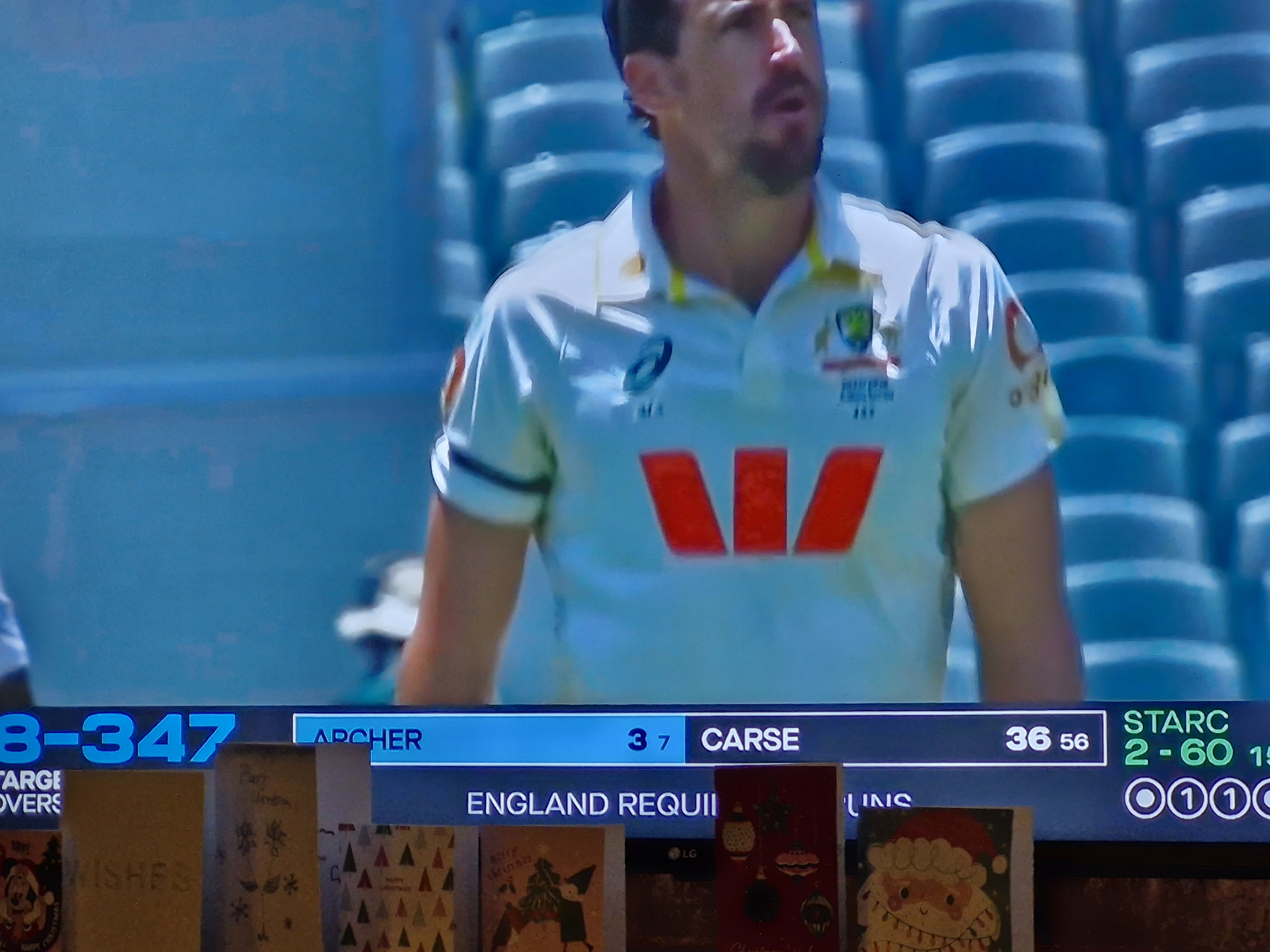 Currently seething that it says "Australia requires 3 wickets..."