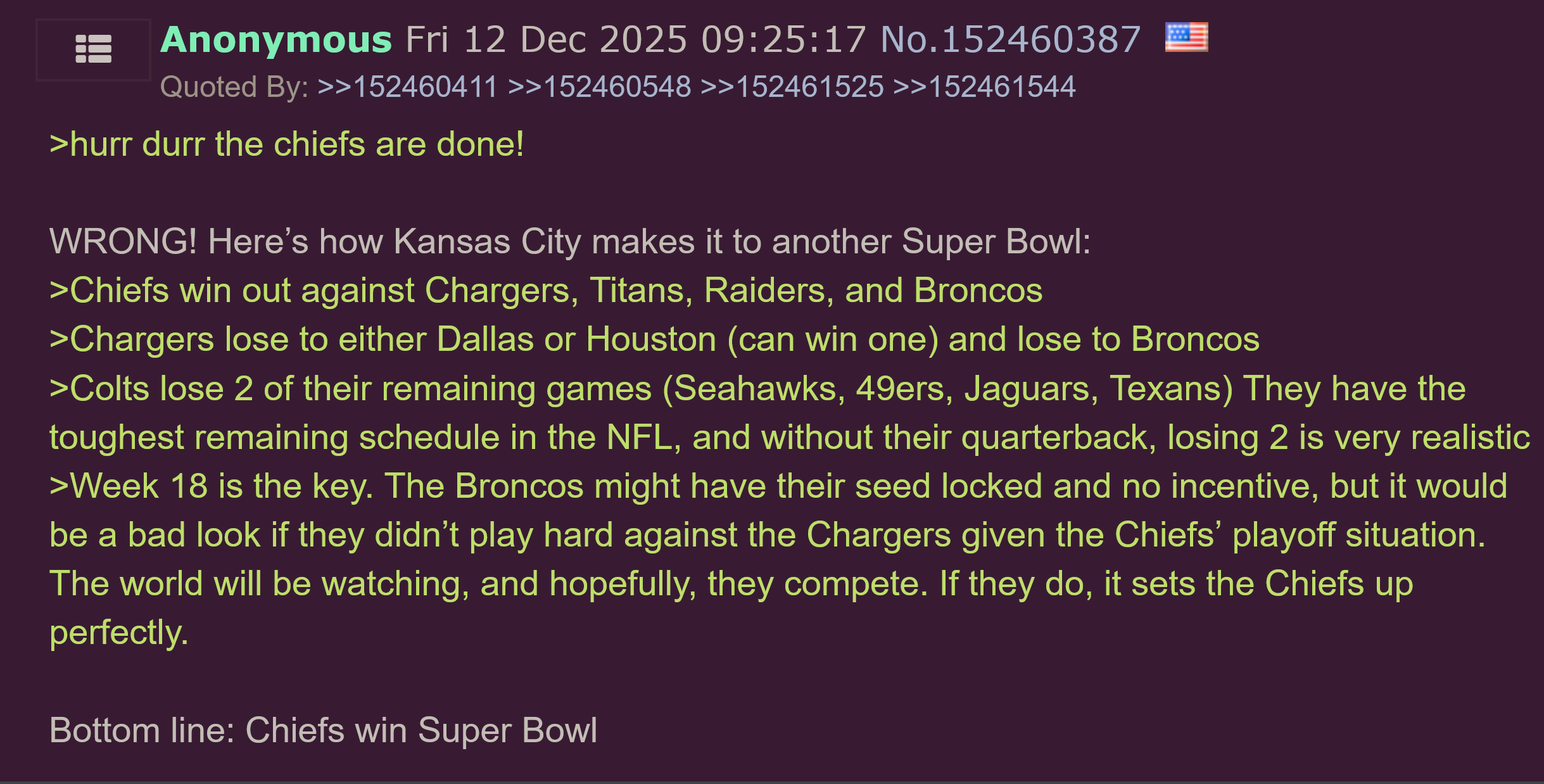 >>152601304For the guy who likes to talk about "bo nix induced meltys", you are certainly having a melty of your own
