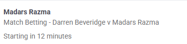 Have to watch the afternoon session from home office. I hope no one calls, since I prefer my Beveridge vs Razma experience to be undisturbed. Also that evening session looks abysmal aside from Chud, unless you actually have hopes for a Lim upset.