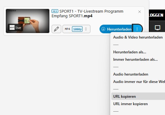 >>152625815NTA, but go into VLC and paste this URL:>https://streaming-s1free.sport1.de/fyTnvR-0lhwAocjNLuz2BQ==,1766424527/ls-45420-1/index.m3u8Maybe open the network stream menu with Ctrl+N first.This one has a fairly low resolution, though.