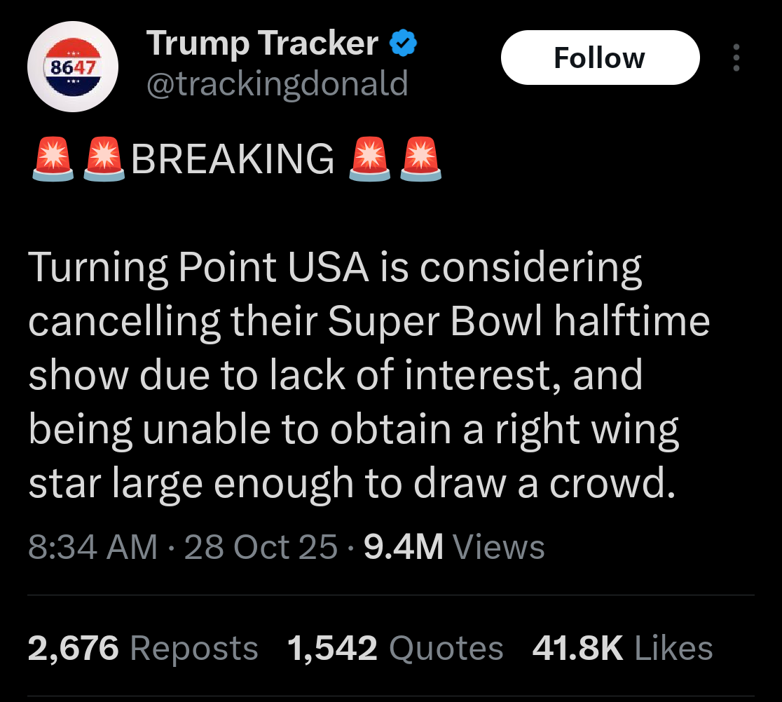 >>152630583Will you be watching TPUSA's potential halftime show on CBS?