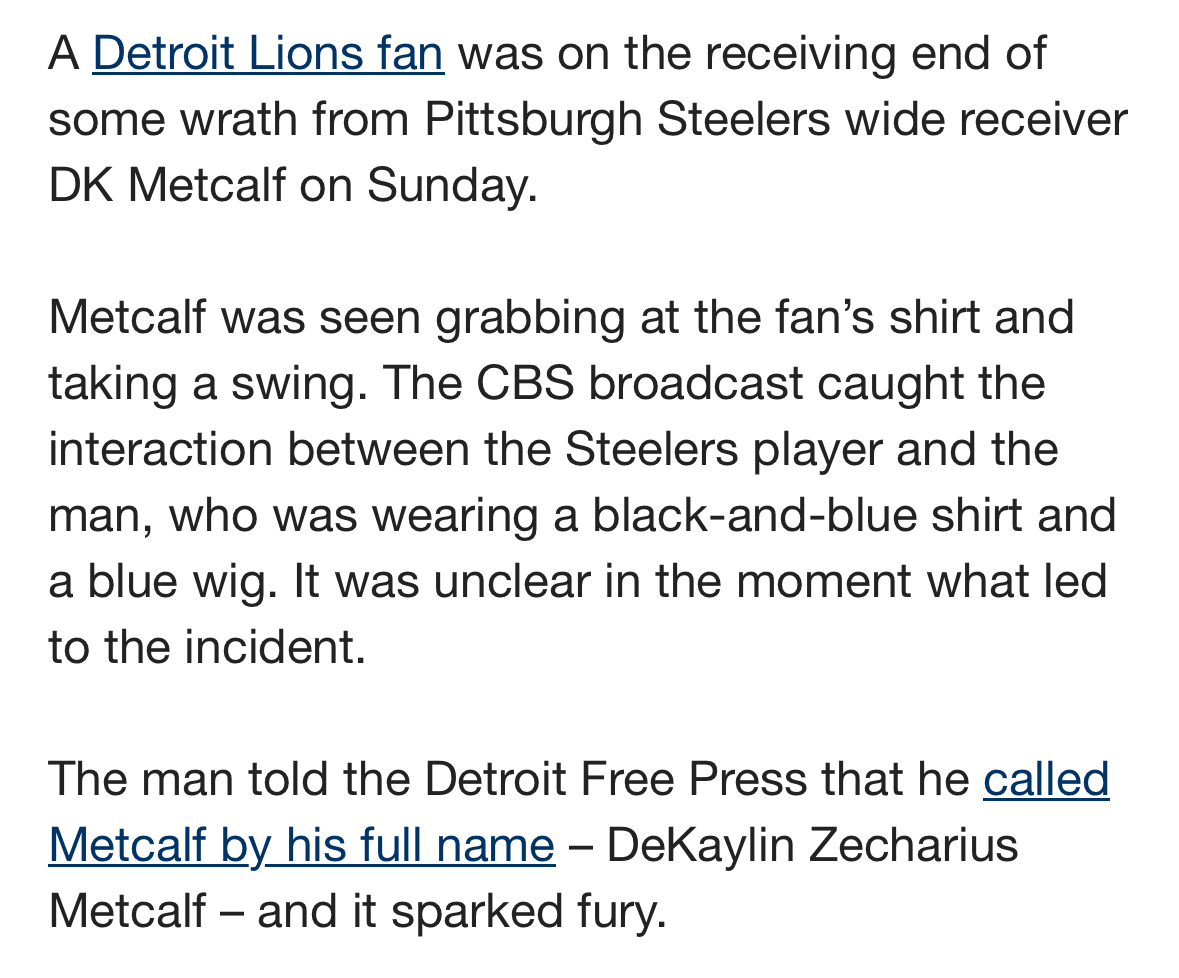 >DK Metcalf should have pulled the fan down from the stands and beaten the fuck out of him. Wtf why did Mina say this?