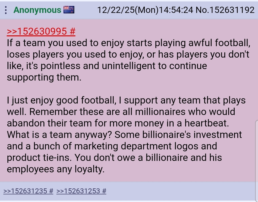 >>152631497I change my allegiance to the team that's losing and hope the winners choke