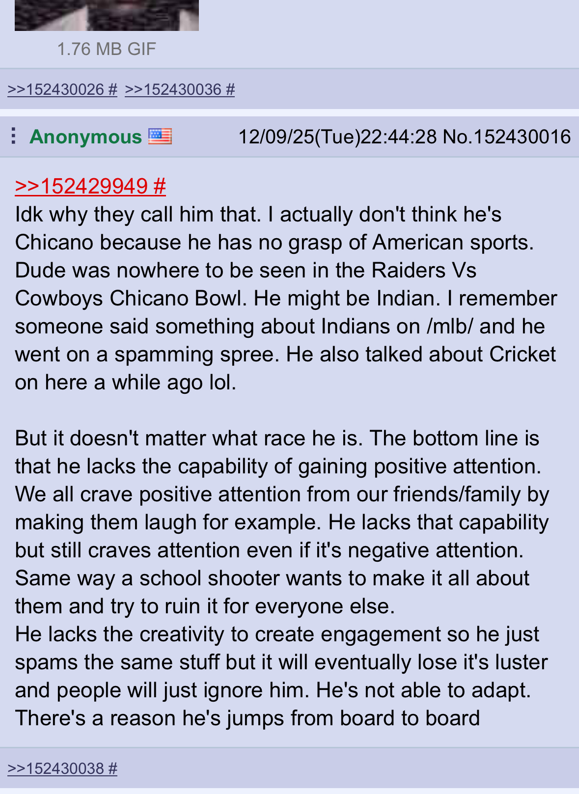 >>152630466lolsorandom tripfag that runs /mlb/, kiwipussy tries to copy him.