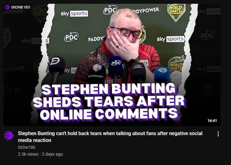Just saw this article: https://www.theguardian.com/sport/2025/dec/23/brutal-schedule-merciless-crowds-always-on-road-is-professional-darts-all-its-cracked-up-to-be>A brutal schedule, merciless crowds and always on the road: is professional darts all it’s cracked up to be?Reminds me of this Chin video from 6 years ago: https://www.youtube.com/watch?v=uxuUxpEvFW4Grim stuff.