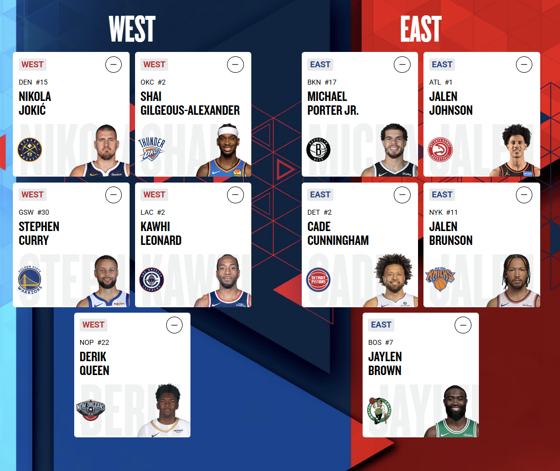 Best player on each team the last few days ATL : Jalen Johnson BKN : Michael Porter Jr. BOS : Jaylen Brown CHA : LaMelo Ball CHI : Josh Giddey CLE : Darius Garland DAL : Anthony Davis DEN : Nikola Jokic DET : Cade Cunningham GSW : Stephen Curry HOU : Amen Thompson IND : Pascal Siakam LAC : Kawhi Leonard LAL : Luka Doncic MEM : Santi Aldama MIA : Kel'el Ware MIL : Kevin Porter Jr. MIN : Anthony Edwards NOP : Derik Queen NYK : Jalen Brunson OKC : Shai Gilgeous-Alexander ORL : Desmond Bane PHI : Joel Embiid PHX : Devin Booker POR : Deni Avdija SAC : DeMar DeRozan SAS : Stephon Castle TOR : Immanuel Quickley UTA : Keyonte George WAS : Alex Sarr