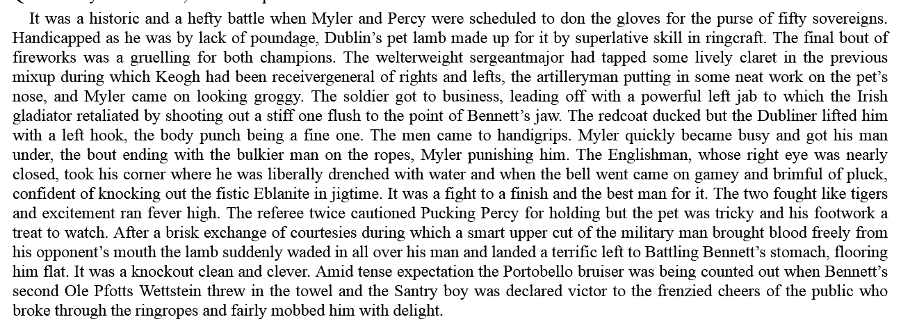 James Joyce describing a boxing match in Ulysses pretty funny