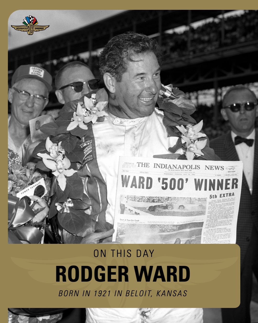 Roger Ward>1959 Indy 500 WinnerLed 130 laps>1962 Indy 500 WinnerLed 66 laps>1959-1964 finished top 5 or won in every 500https://www.youtube.com/watch?v=F4XR3uo59to