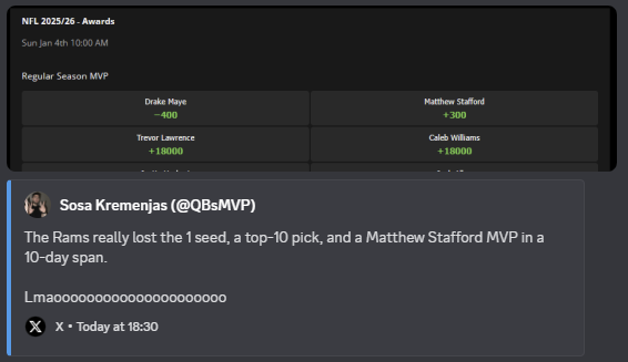 >>152734671We don't have to be ready for that because it isn't happening. It's going to be one of the NFC West teams or Jags/Bills.