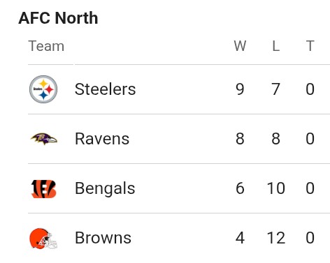 >>152736466Everyone is clinched or eliminated except forSteelers/Ravens and...