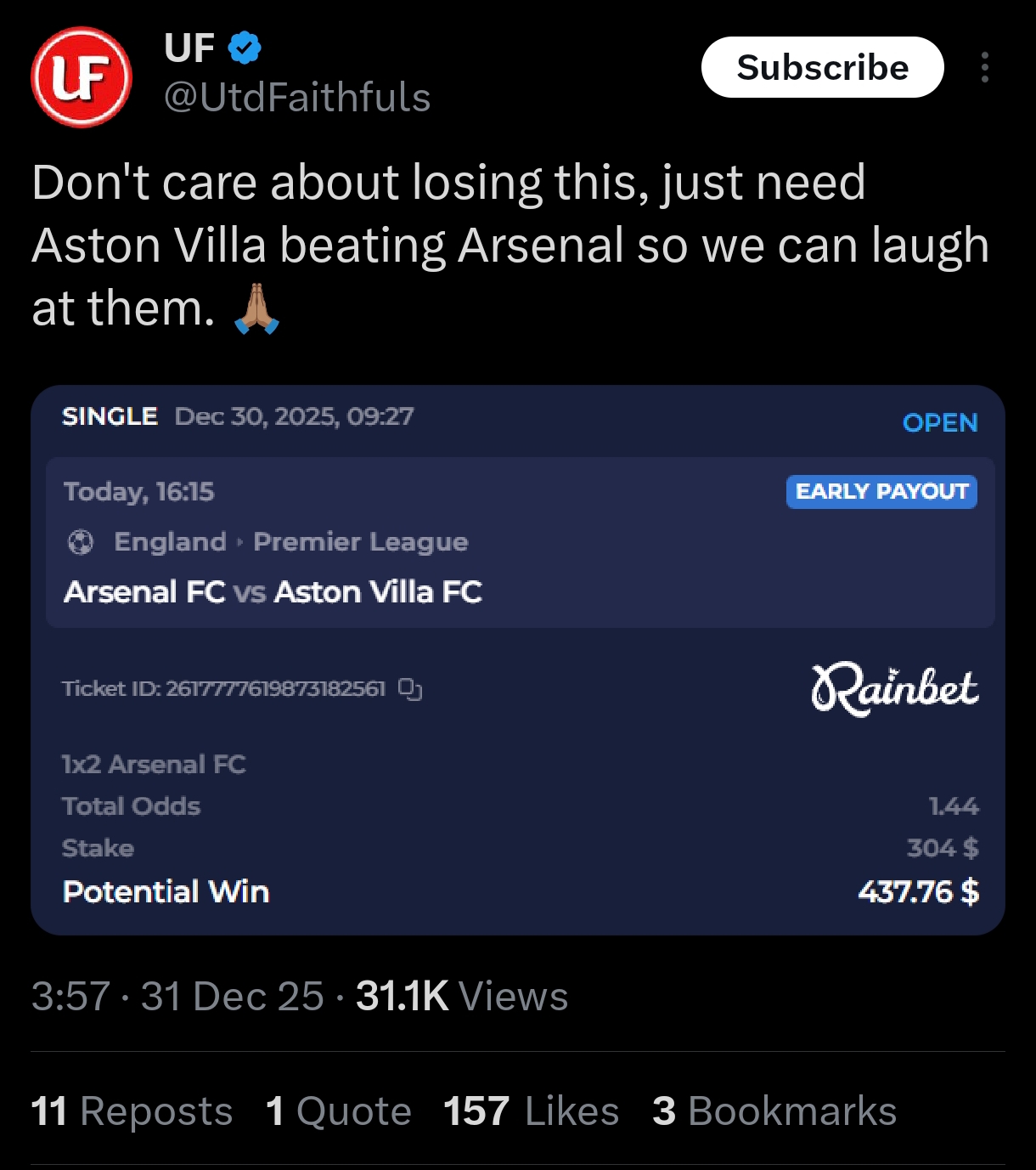 >>152743536Yeah because arsenal will bottle by then