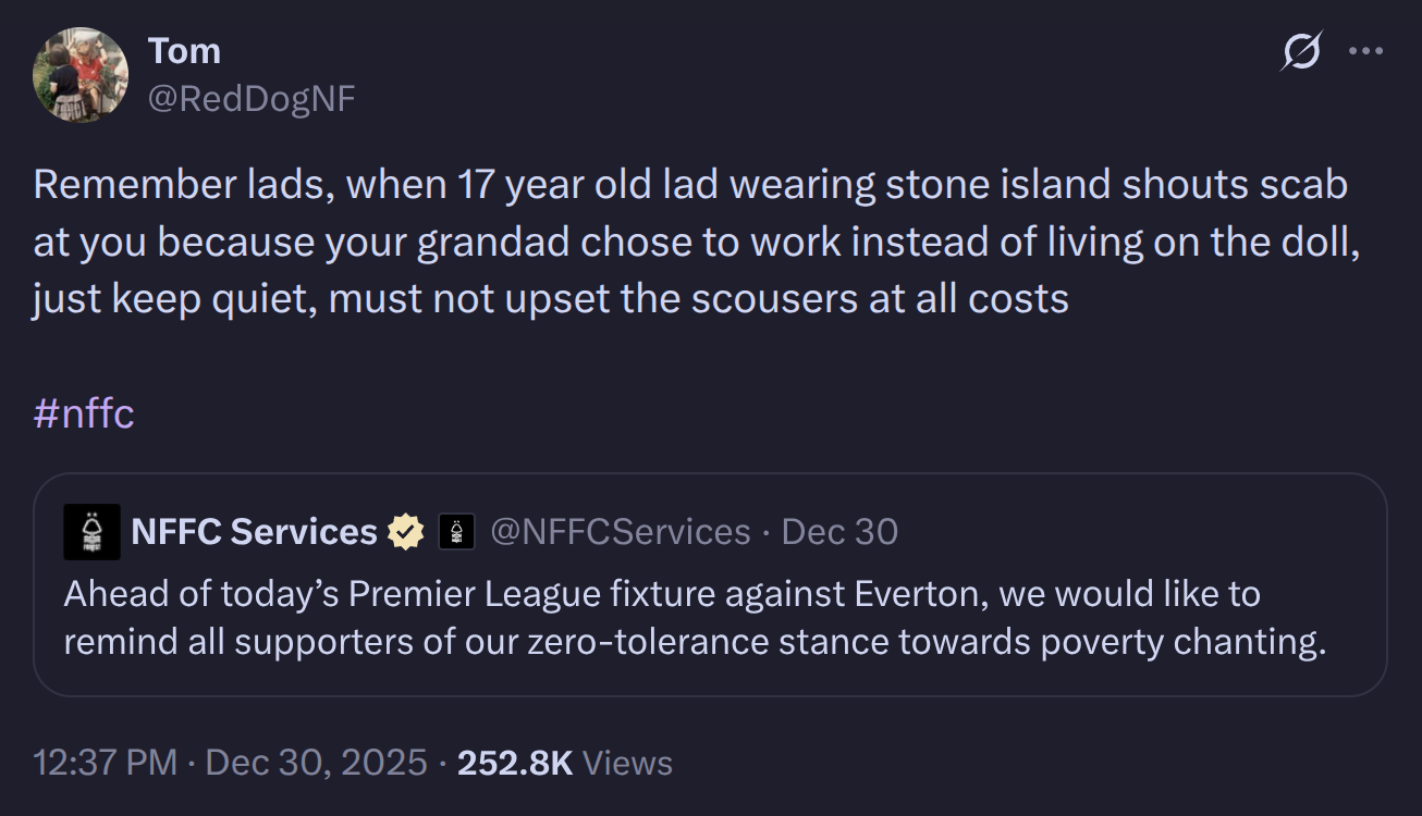 >>152752017>every type of insult under the sun is acceptable in football chanting>but don’t you dare mock scousers for being poor or you’ll be kicked out and arrestedWhy are scousaars such sensitive faggots?