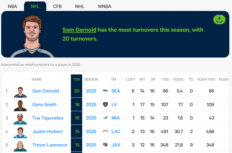 >when sam darnold average 2 turn overs every single gameeventually this is going to cost us the game and I hope he gets anally raped like kevin nash