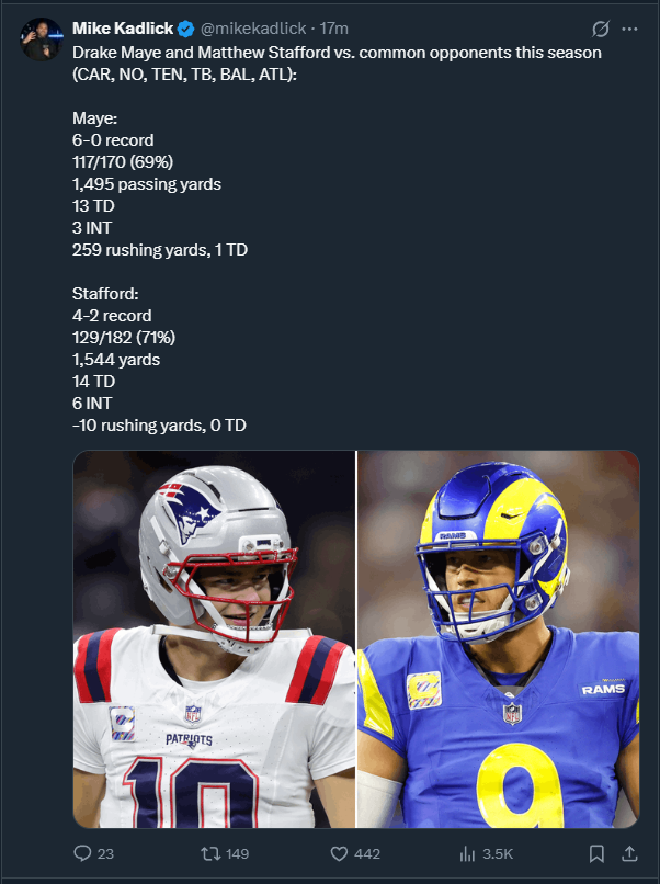 >>152753421Case in point. Maye is putting up unreal numbers and took a last place team to first.