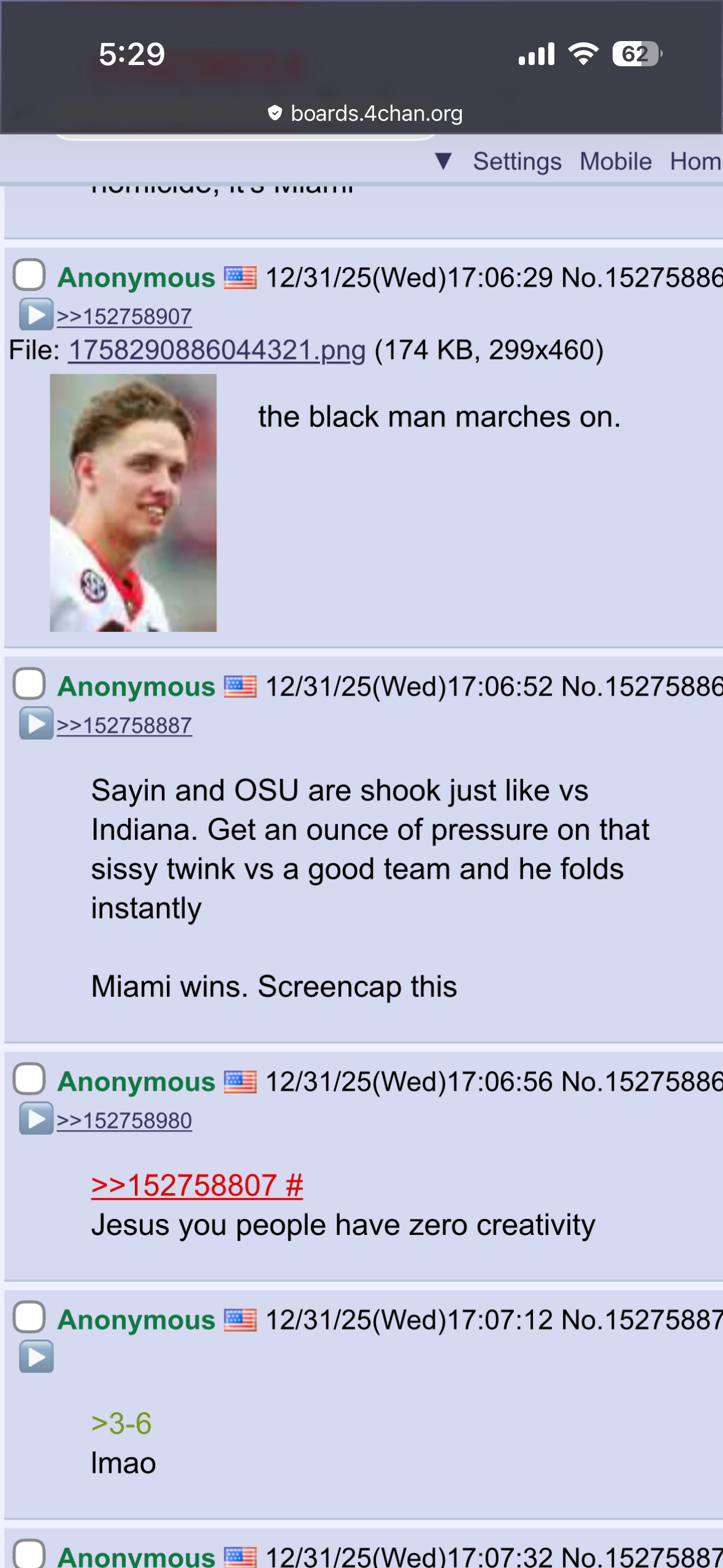 I want Ohio to win so the Kiwi on /nfl/ can stop pushing his Carson Beck fanfic