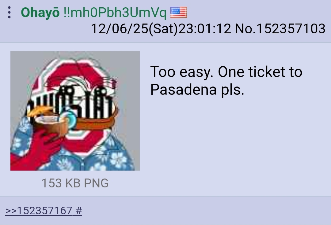 >>152759824Moving to new thread. THE Ohio State University is going to win this game and you’re going to seethe.