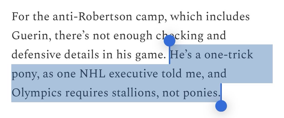 ...why are we throwing Brock Nelson and Vincent Trochek to the olympics over Robertson, DeBrincat and Zegras?