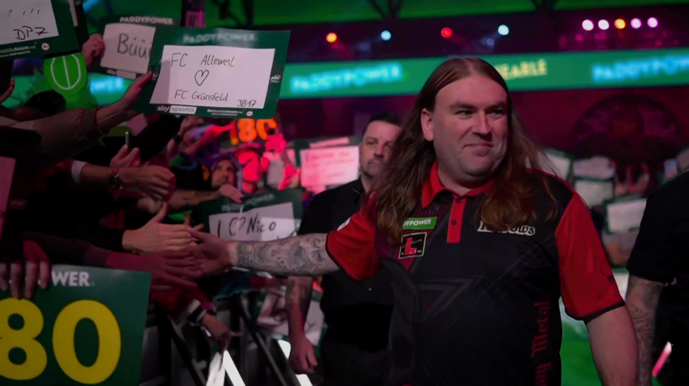 Ryan Searle has been helping support the Cure ADOA Foundation from the Netherlands during this event.Searle has been playing with a rare eye condition Autosomal Dominant Optic Atrophy (ADOA) which sometimes stops him from seeing where his darts land, but it has not stopped him from becoming one of the current top players in the world.Dutch broadcaster Viaplay NL have promoted it and over €15,000 has been donated so far and its being promoted too on Viaplay across Scandinavia.Today for the semi-finals to raise awareness, Paddy Power are changing the 180 cards and some on-stage signage to blurry, as would be seen by sufferers. They are also matching the €15,000 donation too.
