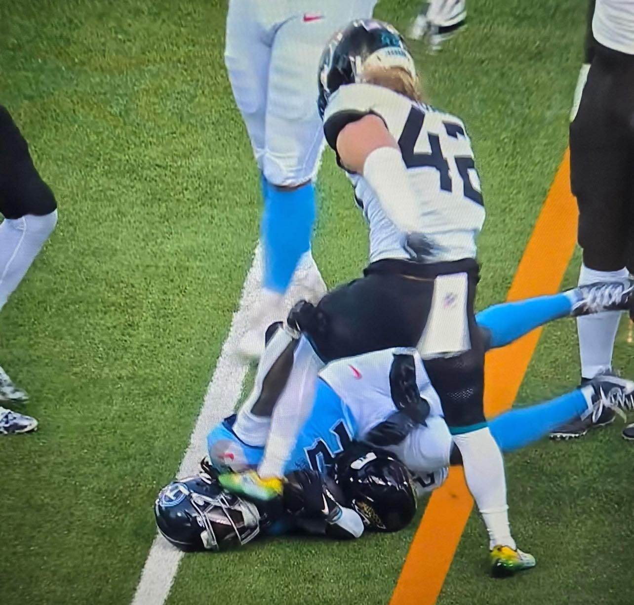 >>152783375Those two chiefs players going head over heels next to each other at the very end is the icing on top. Bonus points for the fact this was the same game that T-Law could have been down by contact...but wasn't...and scored, creating another moment of the year contender.