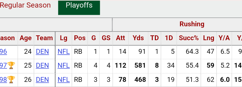 Terrell Davis was what AP would never end up being. TD was the best player in the NFL for 2 seasons resulting in B2B rings. AP was shit in the playoffs.