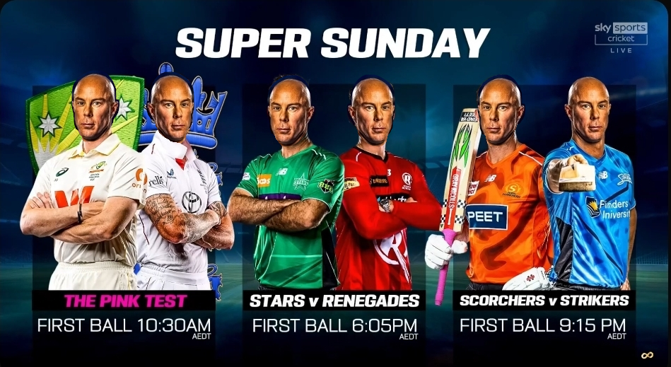 BBL tonight:Stars vs Renegades - 6:05Scorchers vs Strikers - 9:15