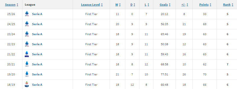 SERIE A ROUND 18>Friday, 2nd January 202620:45 Cagliari 0 - 1 AC Bbilan >Saturday, 3rd January 202612:30 Como 1-0 Udinese15:00 FC Genoa 1-1 Pisa15:00 US Sassuolo 1-1 Parma18:00 Juventus 1-1 Lecce20:45 Atalanta 1-0 AS Roma>Sunday, 4th January 202612:30 S.S. Lazio - Napoli15:00 Fiorentina - Cremonese18:00 Hellas Verona FC - Torino20:45 Inter - BolognaPrevious >>152784194Reminder to keep it schizo, do NOT take your meds, drink alot of water, brace for no winter mercato and stay drawpilled