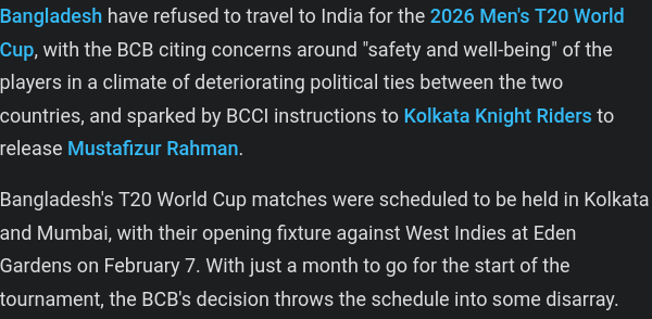 >Won't let Pakistan and Bangladesh play>Want to host every other tournamentNice (((sport)))