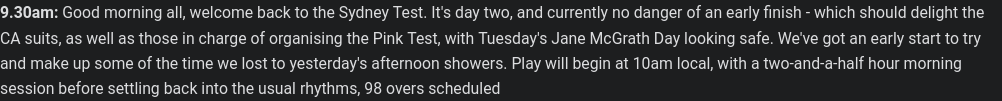 Good that I didn't miss any cricket after I went to bed last night.