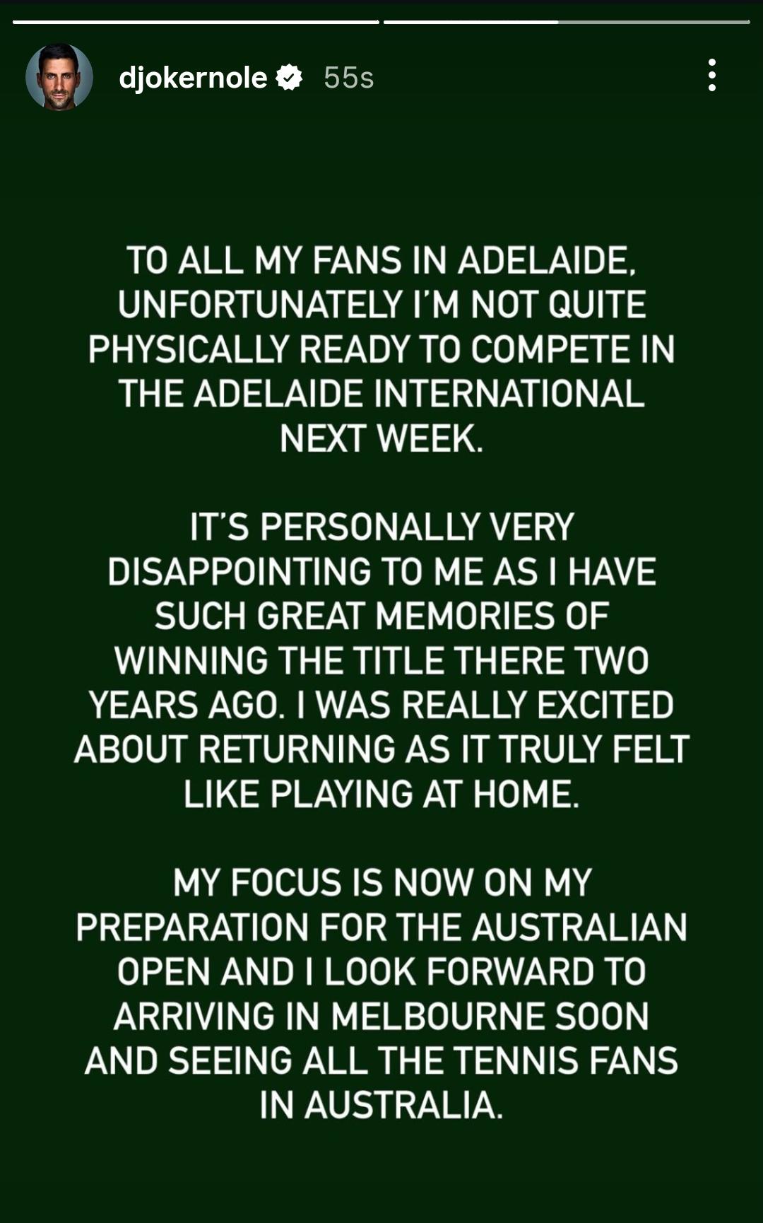 Novak has pulled out of Adelaide
