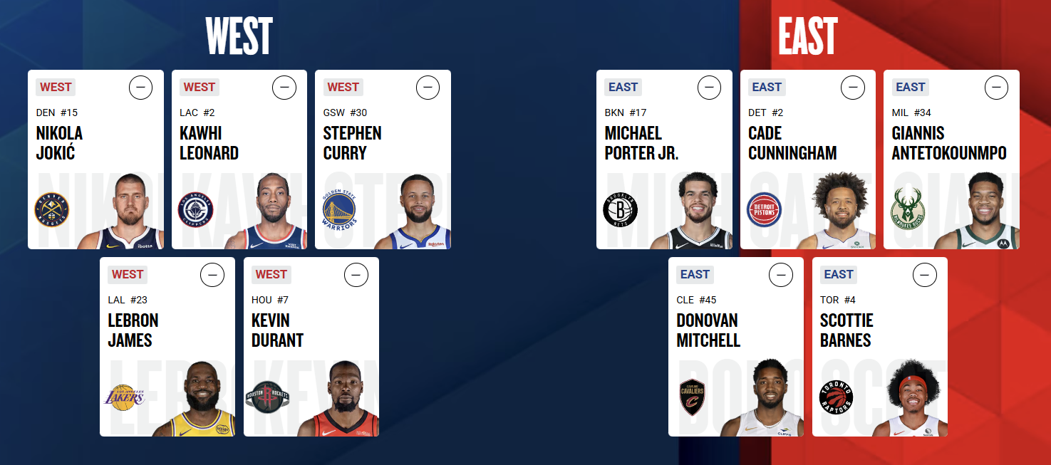 >>152876015I guess it depends on what format are they doing?>Tatum out>Kyrie out>Lillard out>Lebron out>Anthony Davis out>Tyler Herro out>Trae Young out>Jokic outThat's 8 open slots now that wasn't there before, I could see them letting MPJ slide in there like they did Dlo that one year.