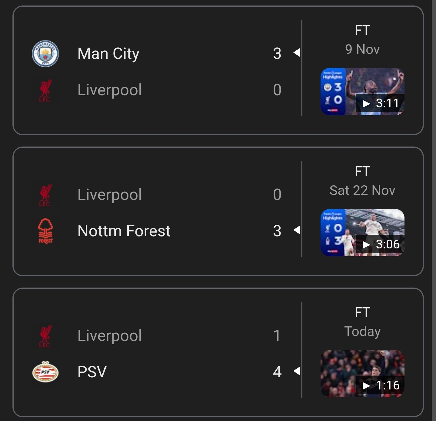 >06/01/26 WEST HAM 1 NOTTINGHAM FOREST 2>07/01/26 CRYSTAL PALACE 0 ASTON VILLA 0FULHAM 2 CHELSEA 1BRENTFORD 3 SUNDERLAND 0BOURNEMOUTH 3 TOTTENHAM HOTSPUR 2MANCHESTER CITY 1 BRIGHTON HOVE & ALBION 1EVERTON 1 WOLVERHAMPTON WANDERERS 1BURNLEY 2 MANCHESTER UNITED 2NEWCASTLE UNITED 4 LEEDS UNITED 3>08/01/26ARSENAL vs. LIVERPOOL
