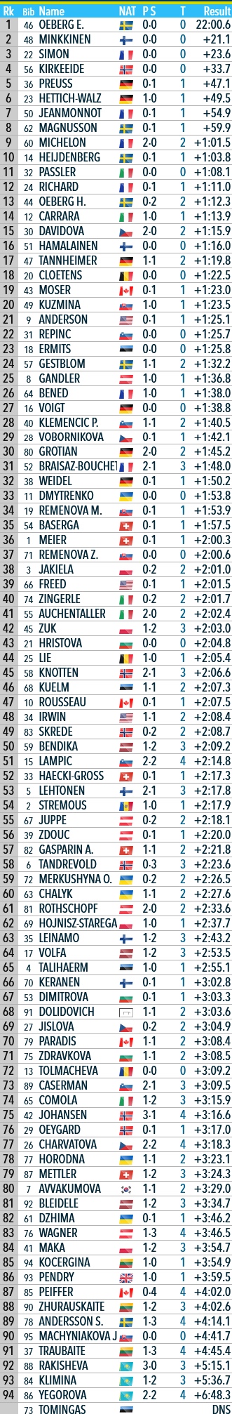 Some big gaps for the women's pursuit, I'm halfway hoping for some >Oberhof weather to make it more even. Luci Anderson got her career best (her previous best in a World Cup race before today was 84th in Östersund last December).