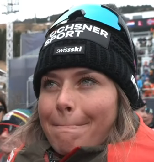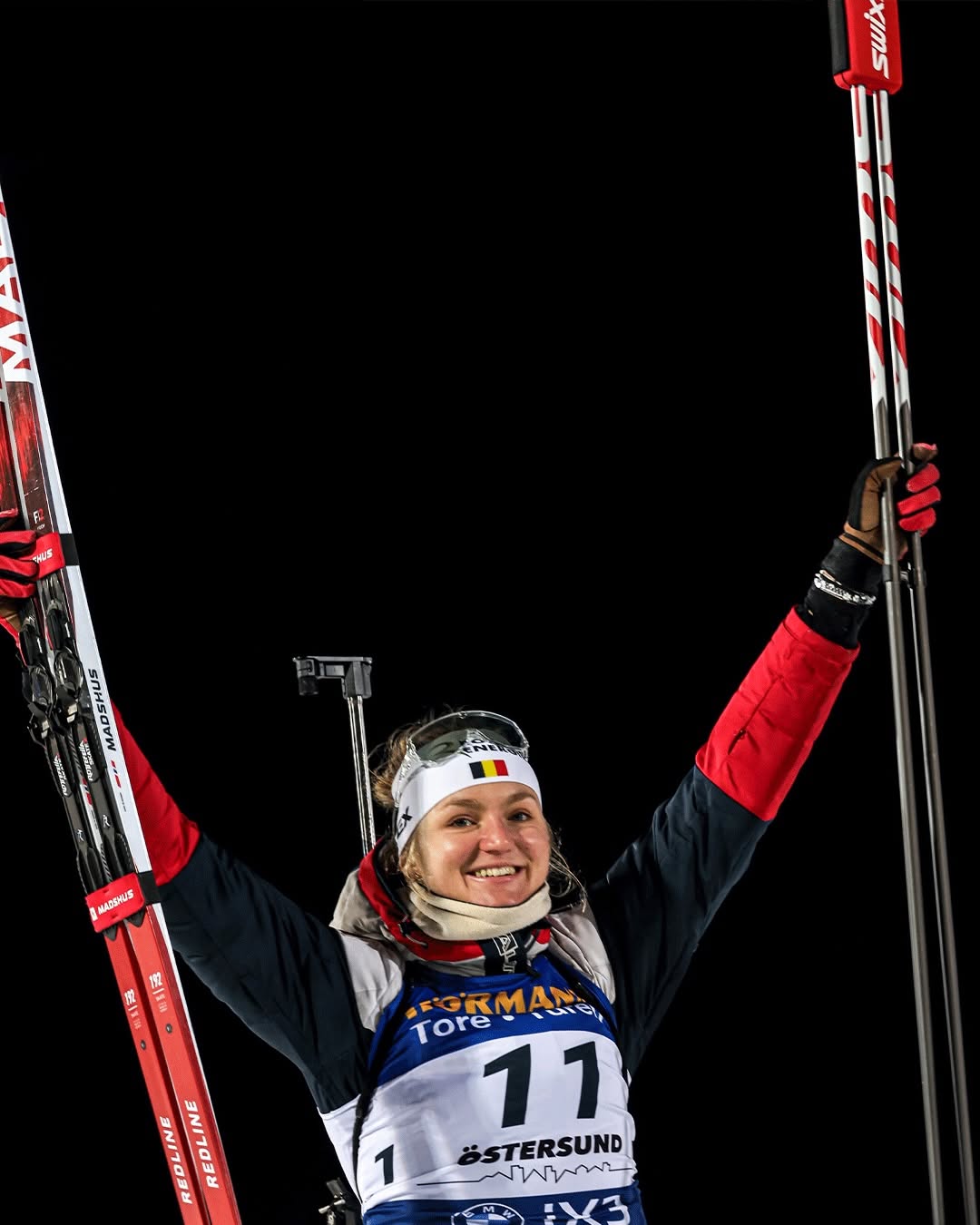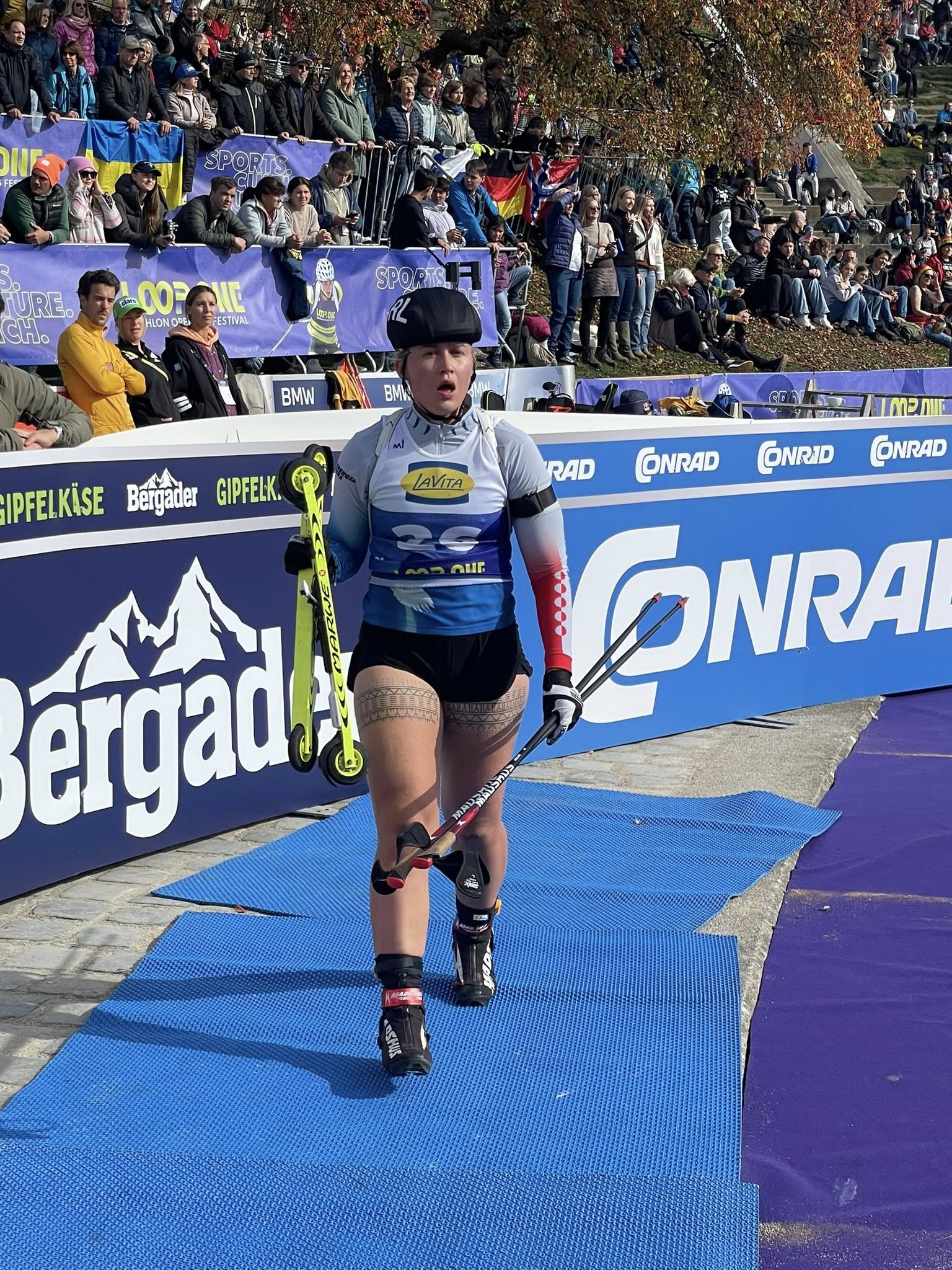 Lou said that she was stressed because she can be DSQ for the sponsor but since a women from the IBU saw it before the race and said it's ok the IBU decide to not DSQ her