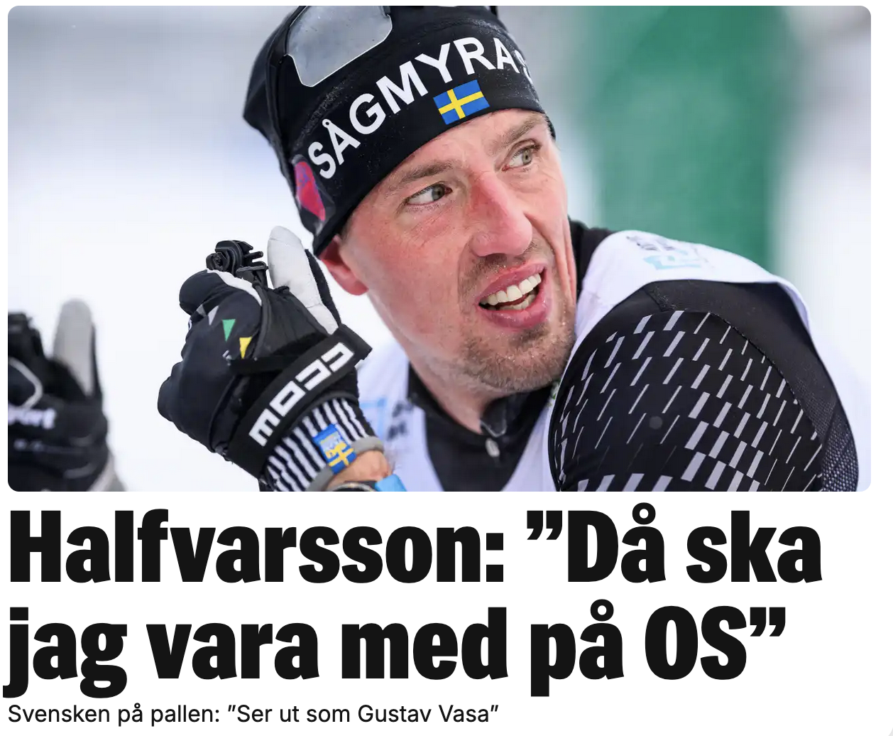 The olympic dream is still alive for Calle, he placed second in a 10km classic race in FalunWhen looking at footage from the race he said it looked like Gustav Vasa was out skiing and he felt like he was dying at the end