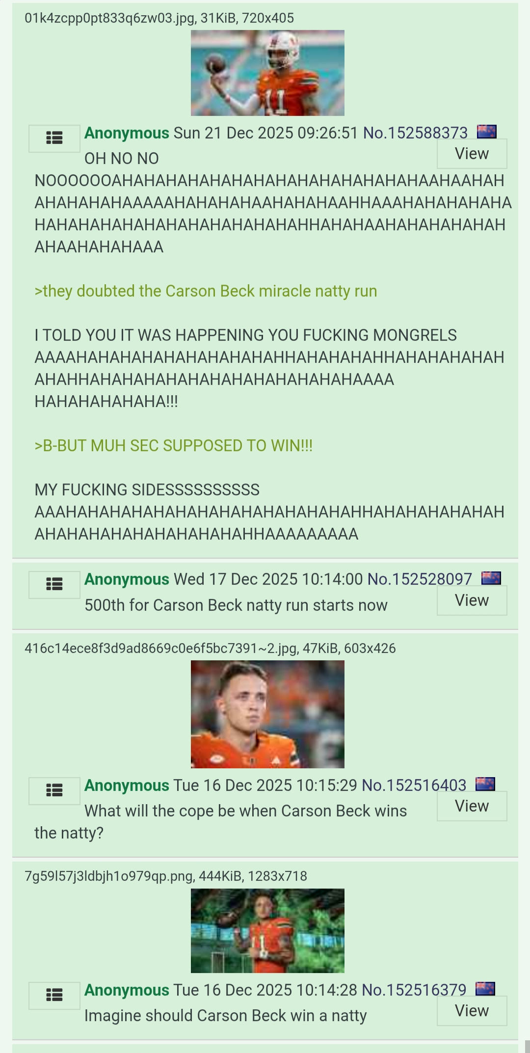 >>152884615As a reminder, the only reason that the Little Ten, Little Twelve, and the ACK one was because our teams weren't playing at full strength. It took moist of the SEC teams having players sit out to go to the NFL for the other schools to even have a chance at beating us. Even then, a lot of the games were very close. Poouston only beat LSU, the LSU tigers that have beaten Clemson, by a few points in the last moments of the game. Same with Missouri, same with Tennessee, same with A&M. Hell, Ole Miss only lost last night because of all of Lane Kiffens actions.Let's face it. The only way SEC teams loses is if we have a handicap places on us. None those other schools had tht and they still almost lose.