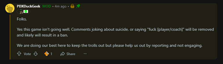 >>152892329Nah, I tried giving The Duck my energy in the first thread, then five minutes later there was a pick-six. Why do I even bother trying anymore?