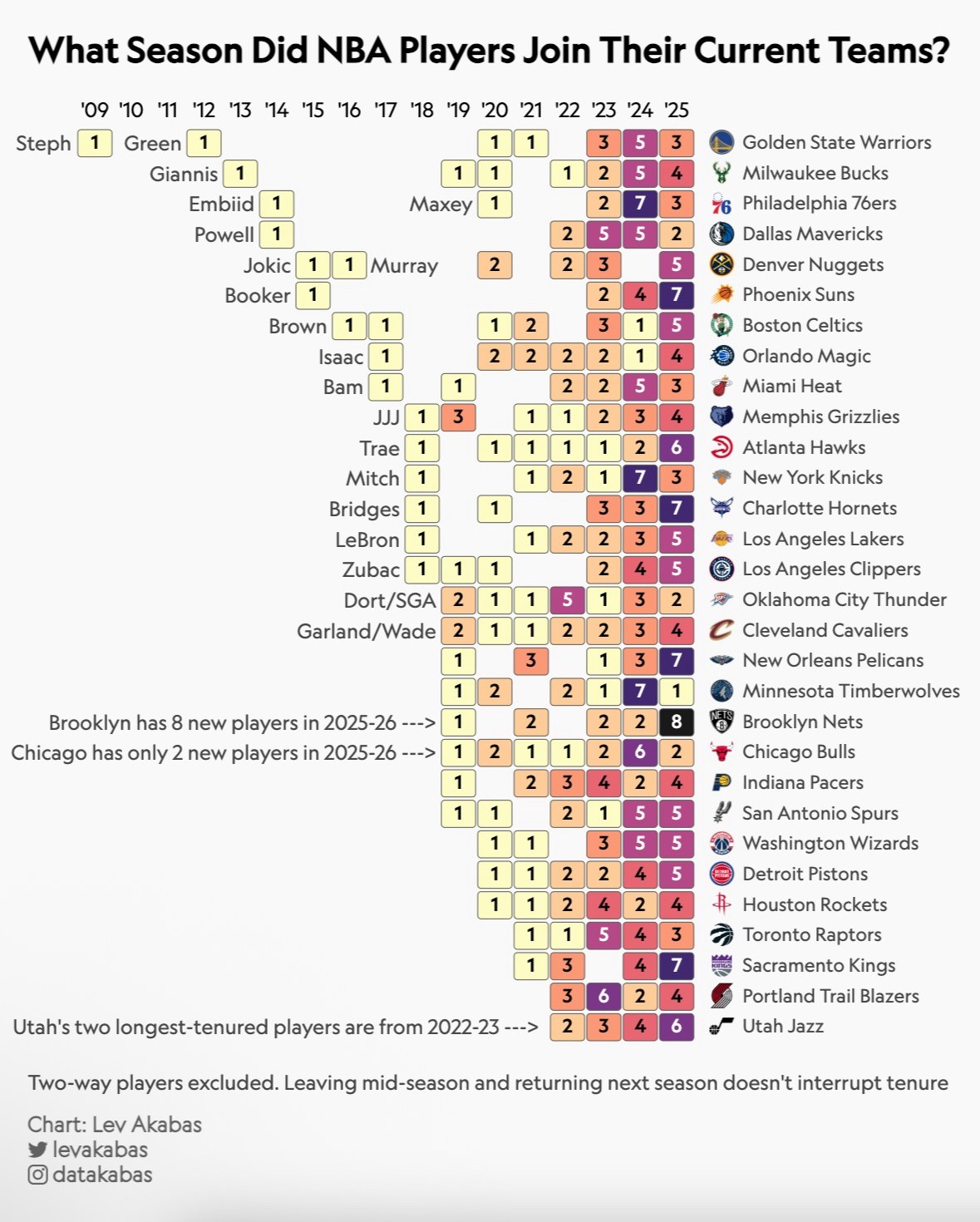 >>152894051the number is how many players currently on the team joined the team that year retard
