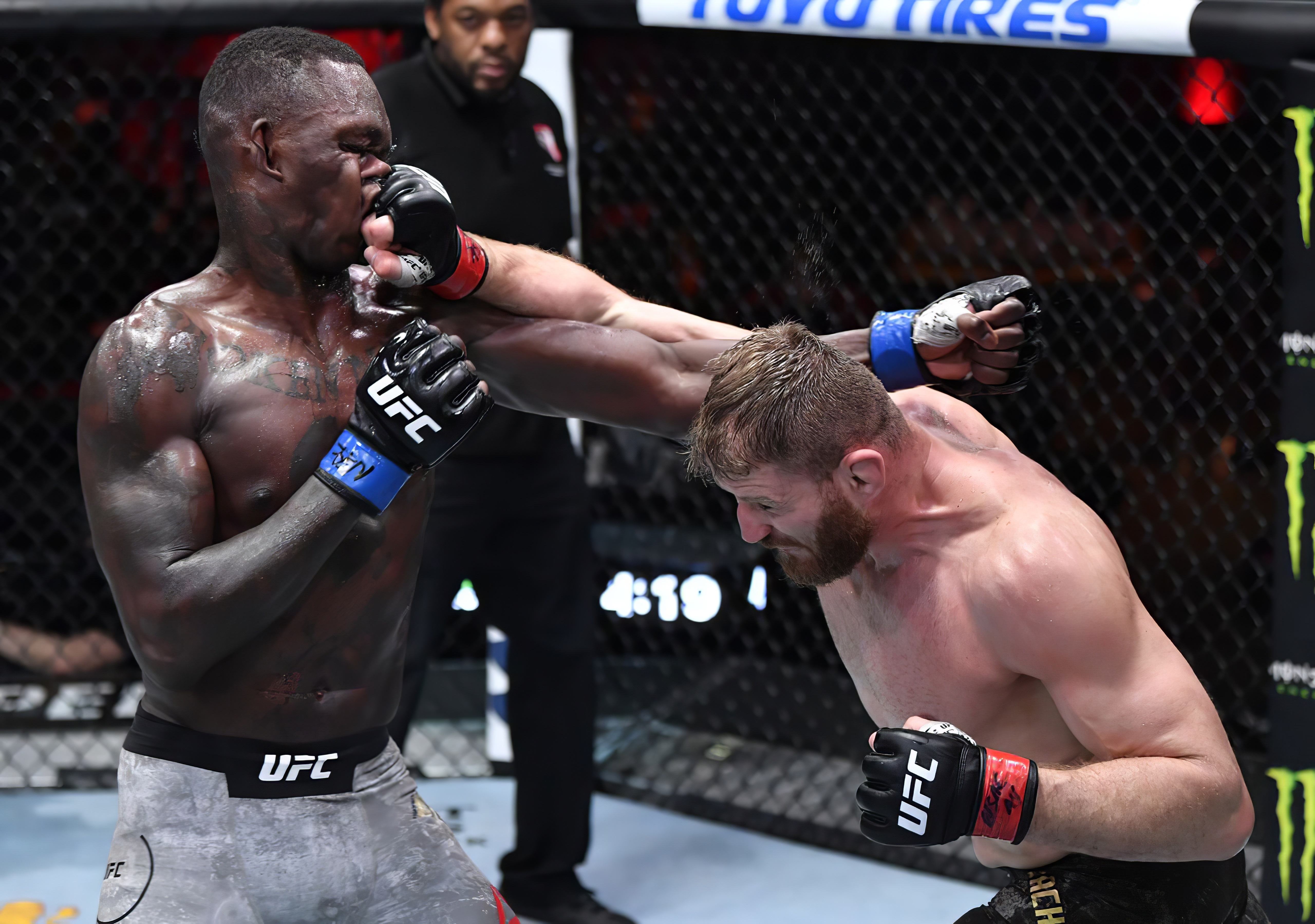 Jan Blachowicz vs Israel Adesanya was scored a 49-46 and 49-45x2 unanimous decision win for Blachowicz.