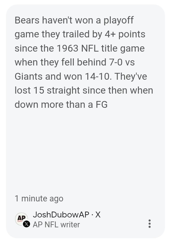 Bears will NEVER win a playoff game LMAOLions will reload, Nine is on the way up, back to the basement next year chuddies
