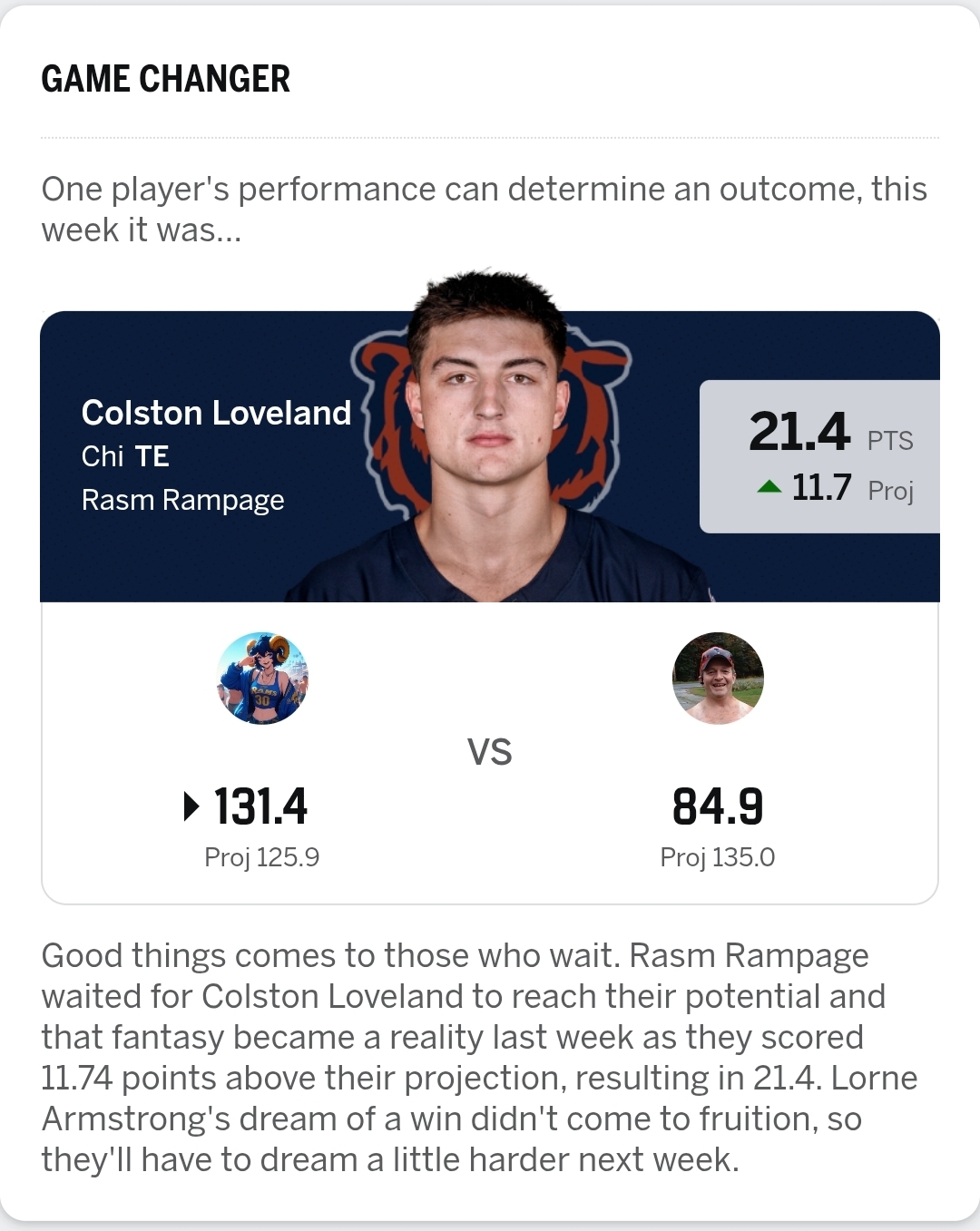 >>152916930You just know Kmet seethes every morning when he wakes up and remembers that Loveland is on his team.