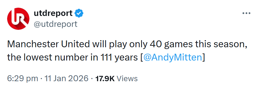 Manchester United will play a total of 40 games this season40