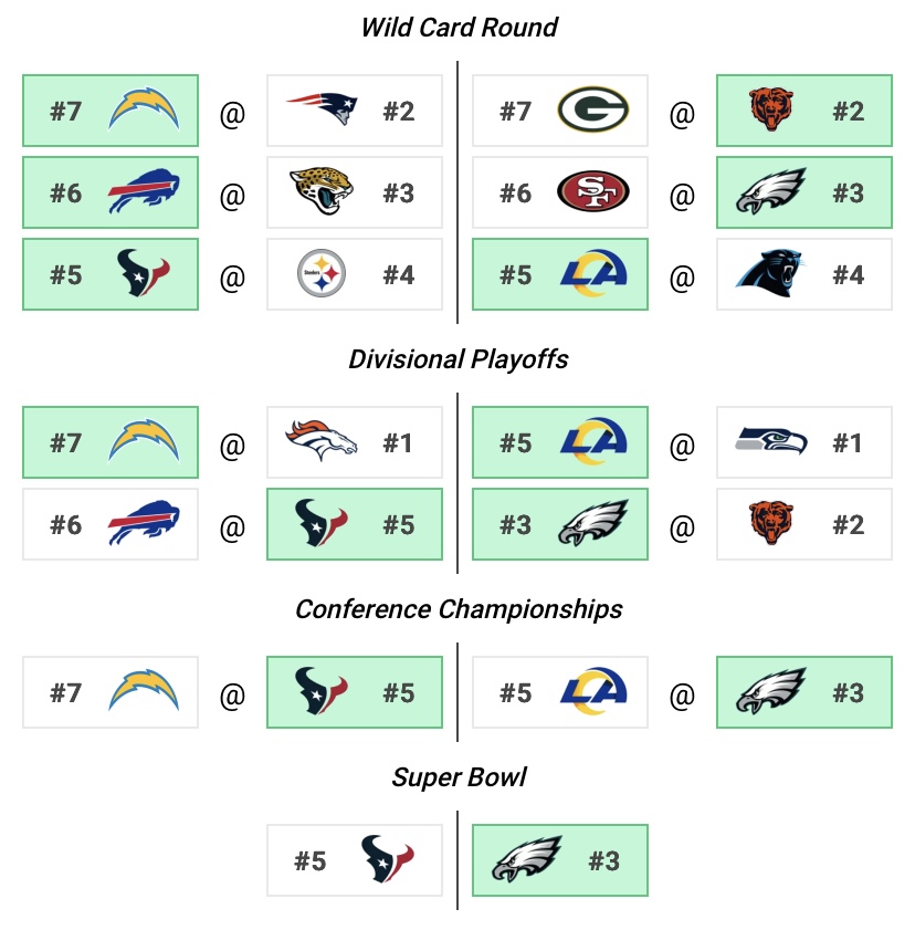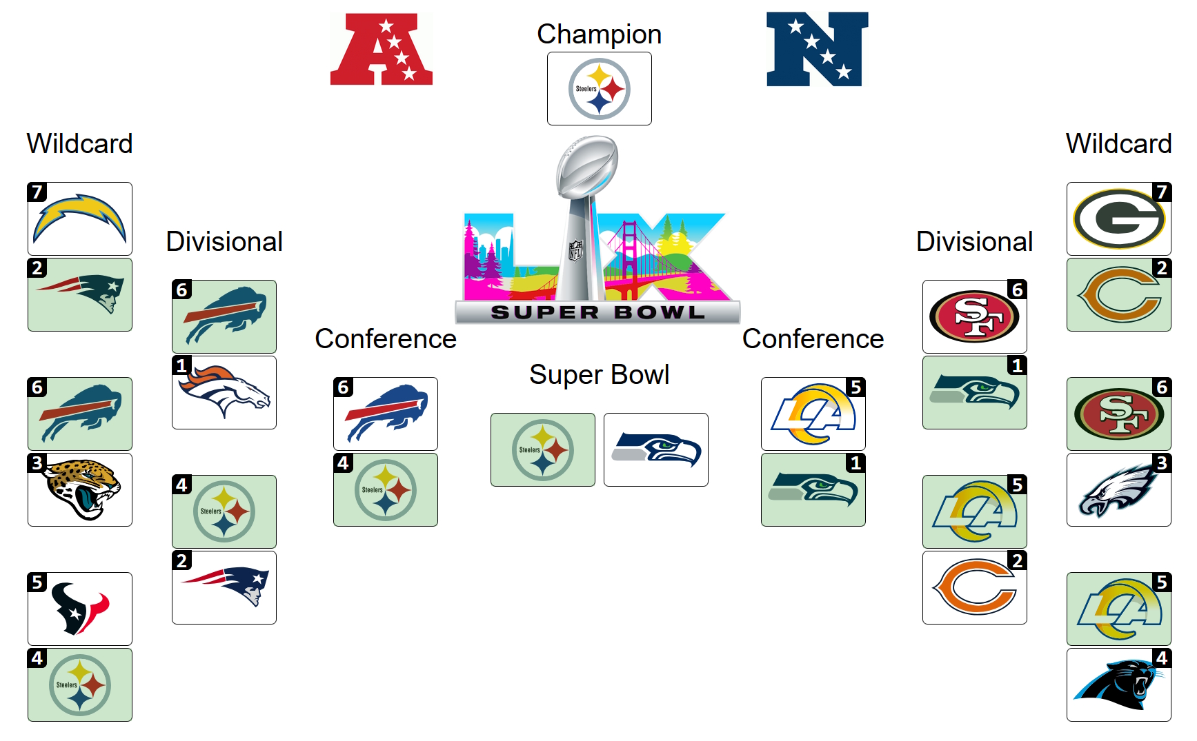 Superbowl will be steelers and rams. I am a wizard.