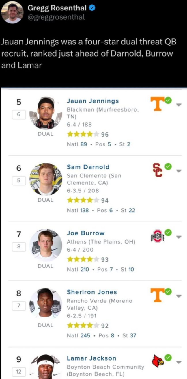 Hurts has two super bowl appearances and a ring.List your QB’s qualifications for being top 5 over him, other than the big 4.
