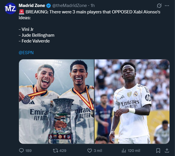 >Fabrizio Romano : "All Xabi Alonso wanted was to transfer his style from Bayer Leverkusen to Real Madrid, but that didn't work out. So, he personally requested to leave because his style didn't receive a warm welcome inside the dressing room."Feel bad for him desu