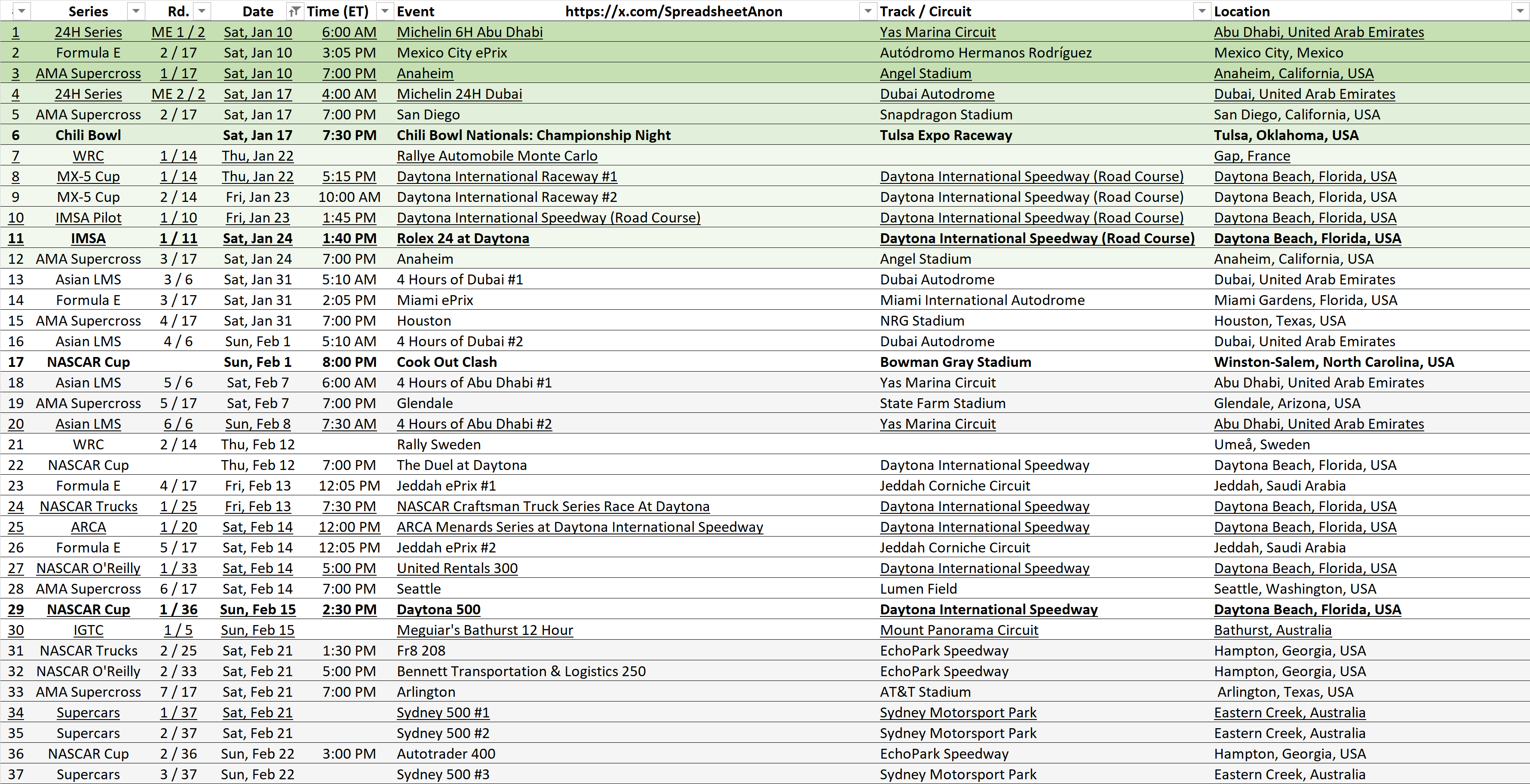 1:40 PM: IMSA, Rd 1/11, 'Rolex 24 at Daytona', Daytona International Speedway (Road Course), Daytona Beach, Florida, USA (Season Start)
