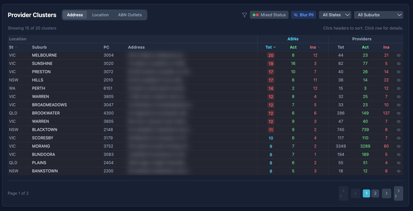 >>152960313NDIS cost the taxpayer $51 billion last year. Can you give me a reason as to why one suburb with a population of approximately 25,000 has or needs 3289 disability service providers without fraud as an explanation?