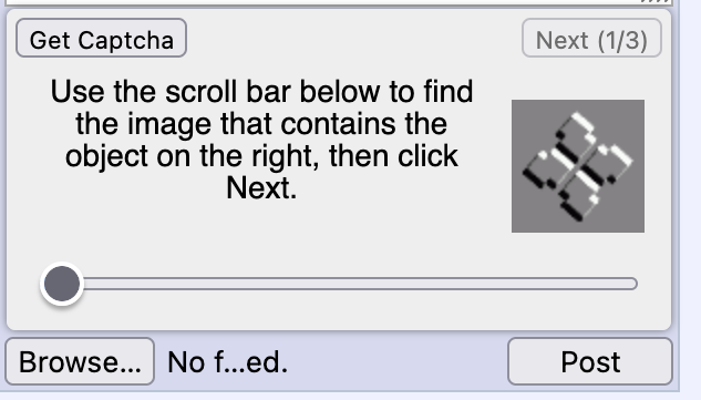 >>152976888what? are we getting the same captcha?it takes 3 minutes for me just with the wait time. and it's not one captcha, it's THREE captchas where you have to scroll through 6 pictures.