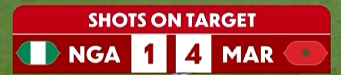 morocco baiting nigeria hard but nigeria just bumps the ball in the box to bono and nothing happens, there is literally noone at the front for nigeria besides osimhen everyone else is like 4 miles behind him and lookman lost somwhere in the middle