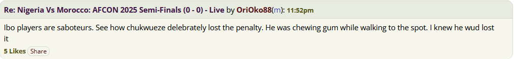 His injury was too much to bear for him. So painful. Chukwueze na mumu. Let him not come close to the SE again. Bruno gave his PK power, he was just unlucky. That of 'Eze was a careless, passionless, powerless internal kick. That the end of his FB career. Na to just dey dribble dey lose possession him sabi. If we see you near the SE, we go arrest you. Shame on you! Go back to your loaned club and be playing your usual trash there till your boots tear finish.